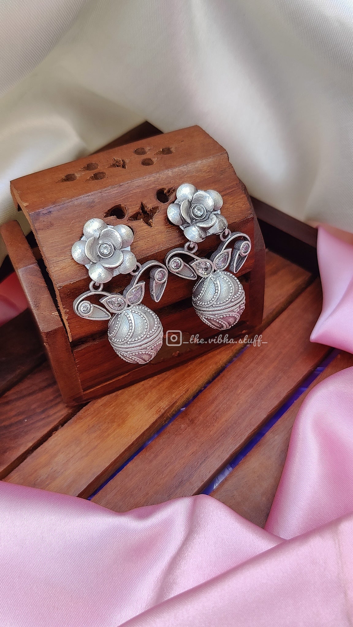 German Silver Flower Vase Earrings